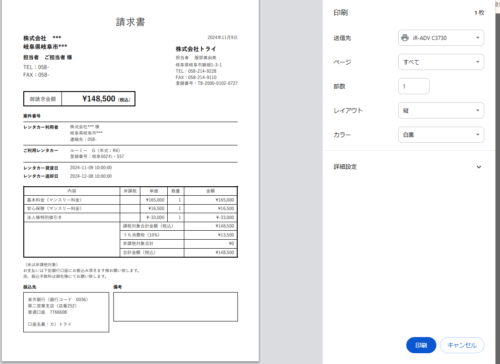 請求書作成の案内は以前しましたが、その「請求書」を簡単に印刷ができます。
