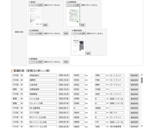 各車両の整備記録を入力し、保存します。