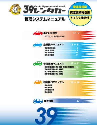 39レンタカートップ > 39レンタカー公式ブログ > レンタカー車両管理システム > 「新 車両管理システム マニュアル」完成!!